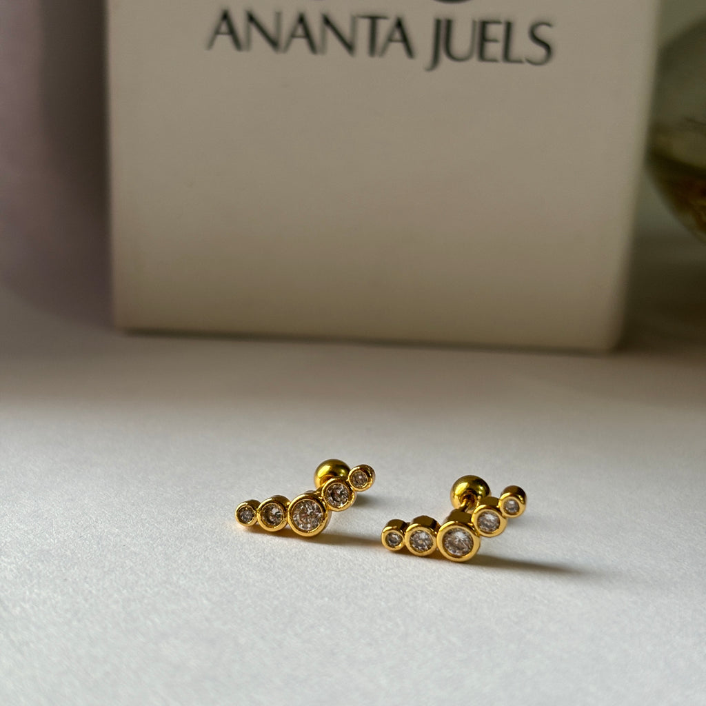 All our pieces are made with Stainless Steel and are coated with 18k gold. Stainless steel is a durable, eco friendly and recyclable material. (Except Everyday hoops collection, it is made of brass but it's also daily wear quality)