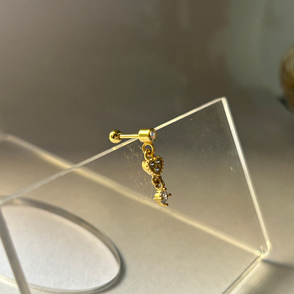 Hanging heart studs (ball screw) single piece